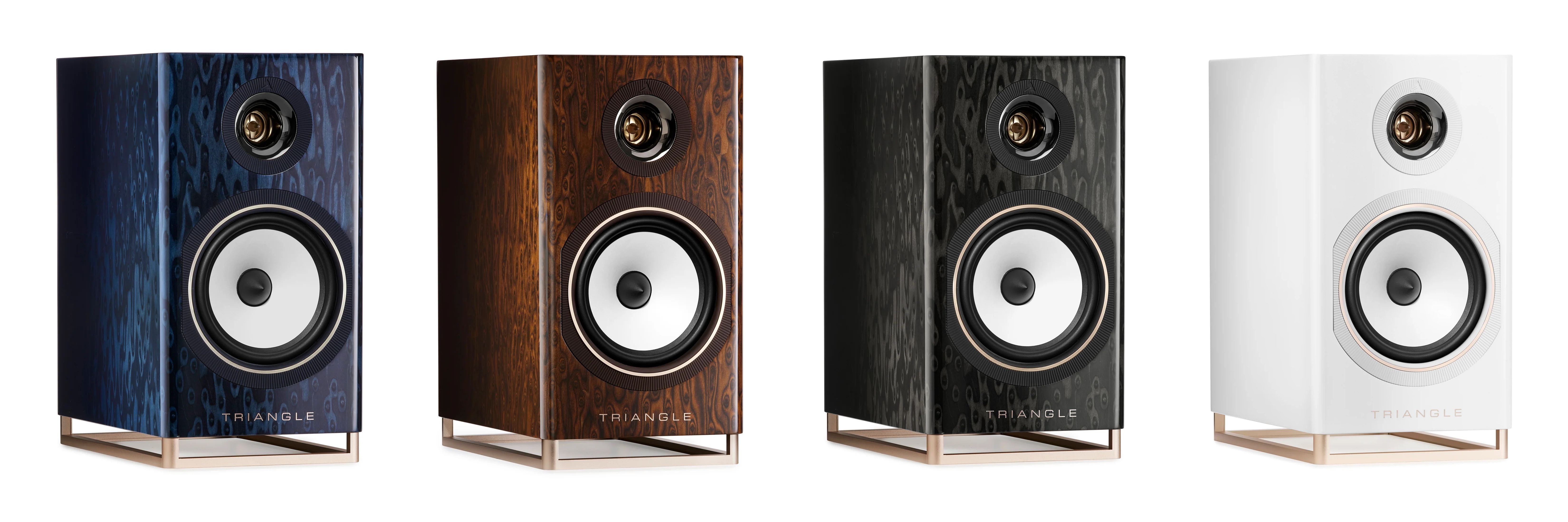Verfijnde accenten van geanodiseerd aluminium met champagnekleurige afwerking maken van deze luidsprekers ware sonische meesterwerken.